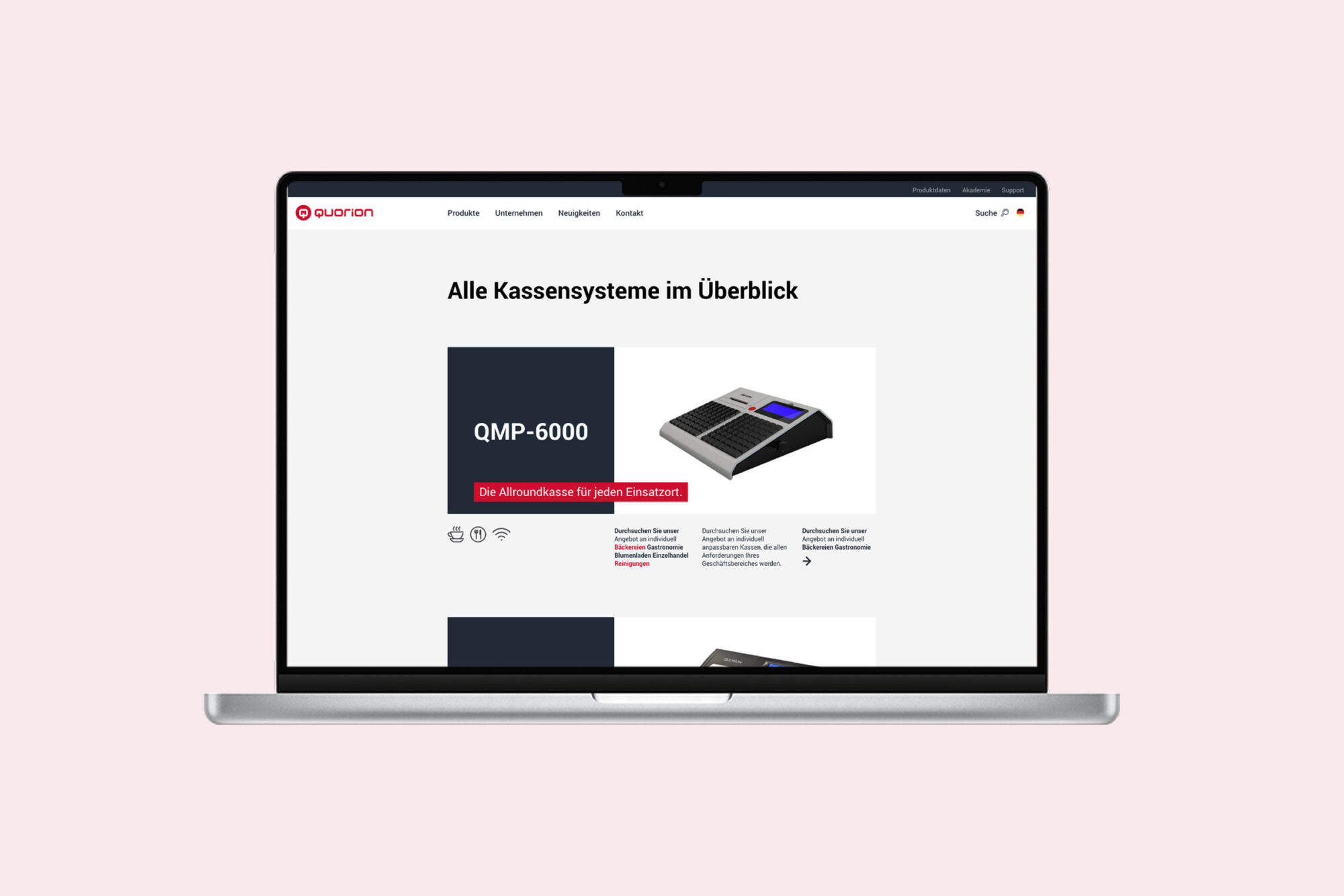 Für QUORION haben wir Branding und Screendesign geschärft, das Produktdesign begleitet und Website/Inhalte neu aufgesetzt. Der klare, wiedererkennbare Look stärkt Vertrauen und Differenzierung im internationalen Markt. Ergebnis: Ein konsistentes System, das Vertrieb und Markenwahrnehmung unterstützt.